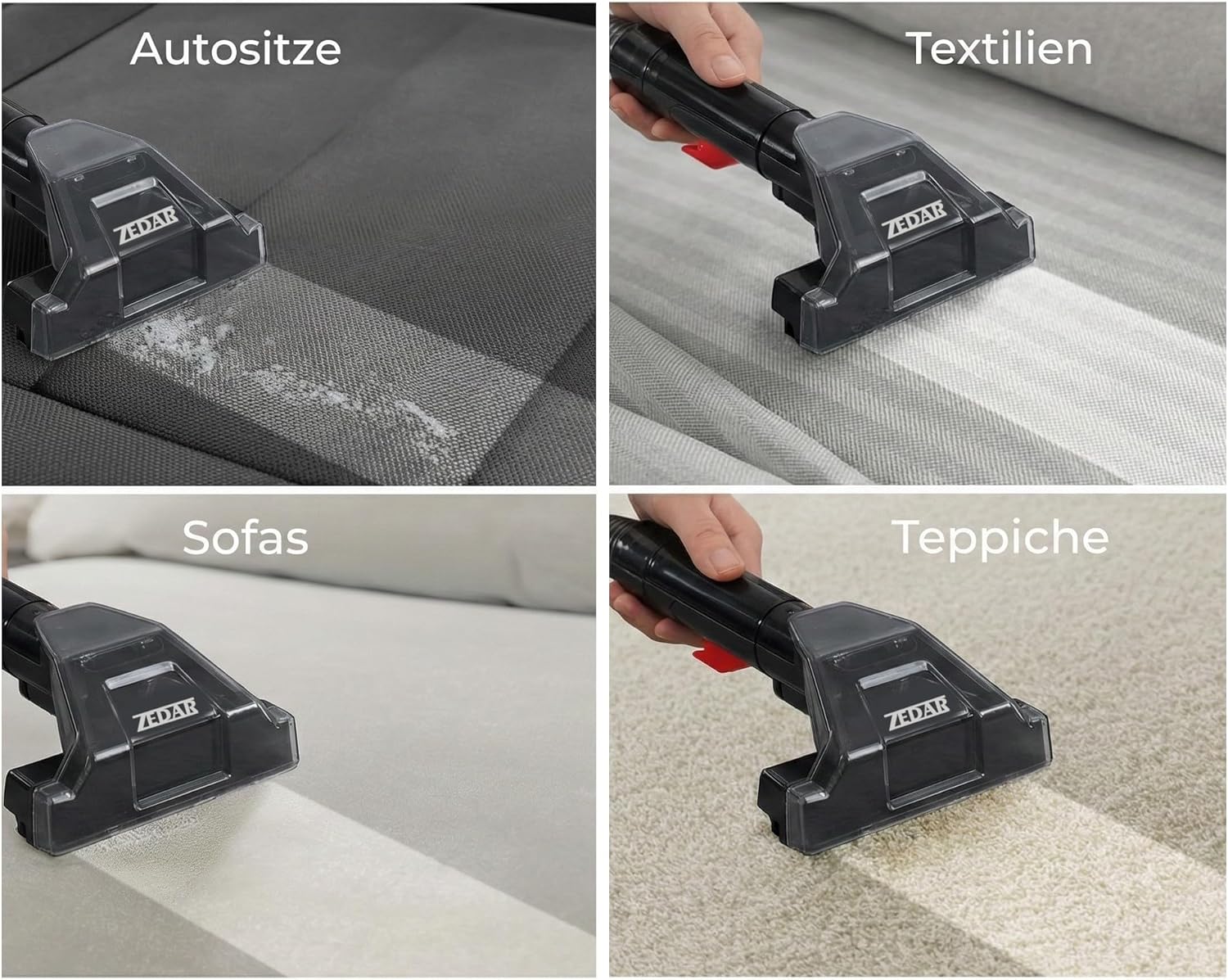 Der Zedar C600 kombiniert Sprühfunktion und kräftige Absaugung, um Verschmutzungen tief aus Textilfasern zu lösen.
