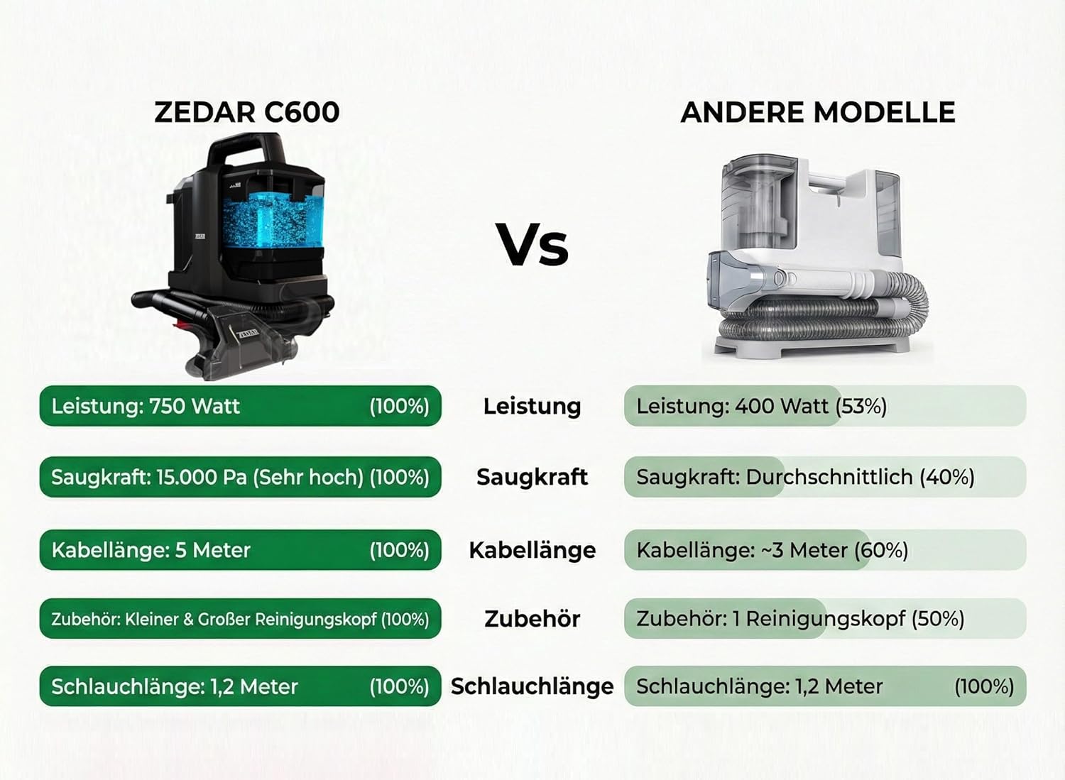 Nassauger Test 2026: Zedar C600 750W im Vergleich