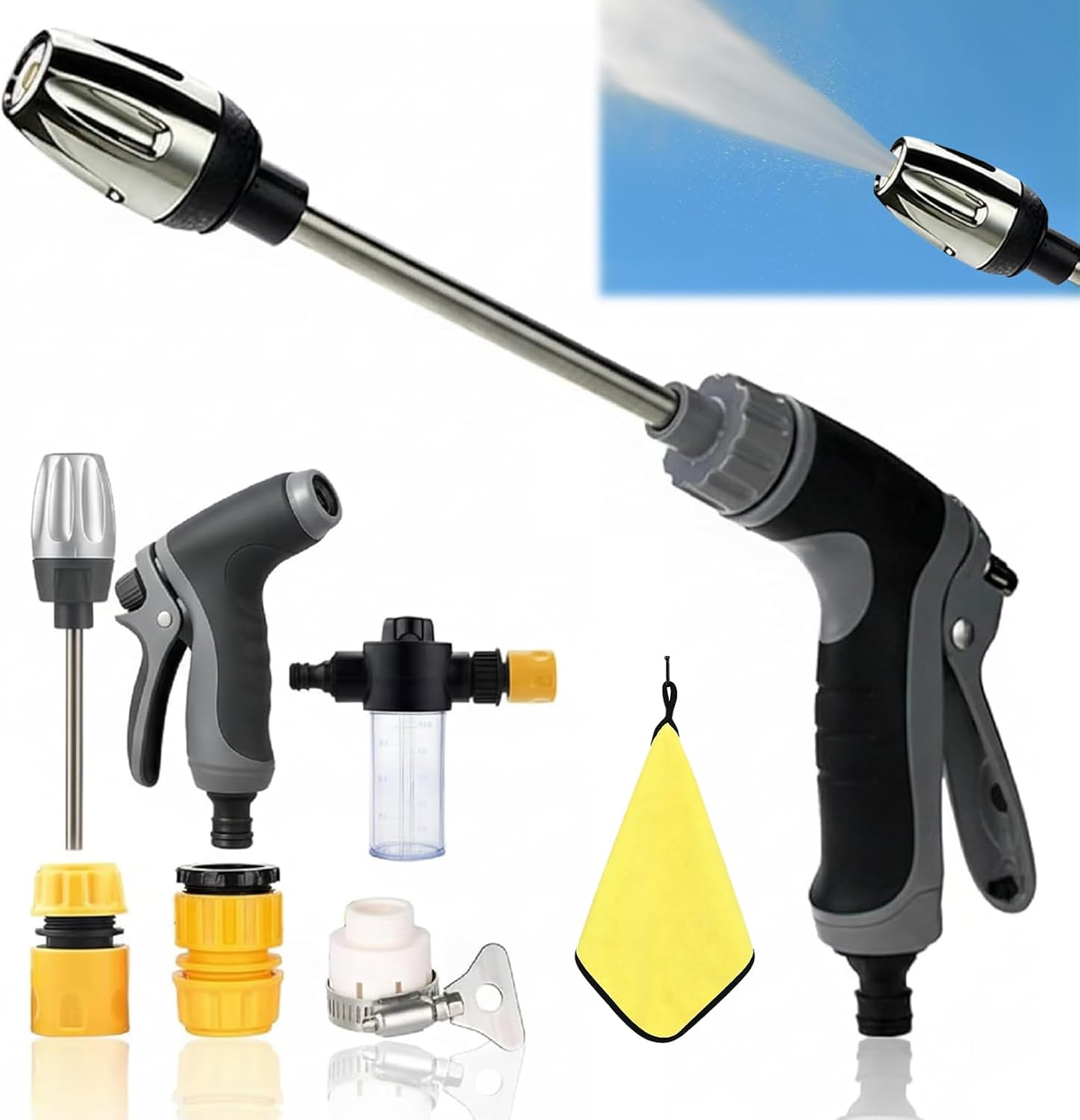 HOCHDRUCK-WASSERPISTOLE: Leistungsstarke Wasserpistole für Gartenschlauch verwandelt normalen Wasserdruck in einen kraftvollen Hochdruckstrahl, ideal für effektive Reinigungsarbeiten.