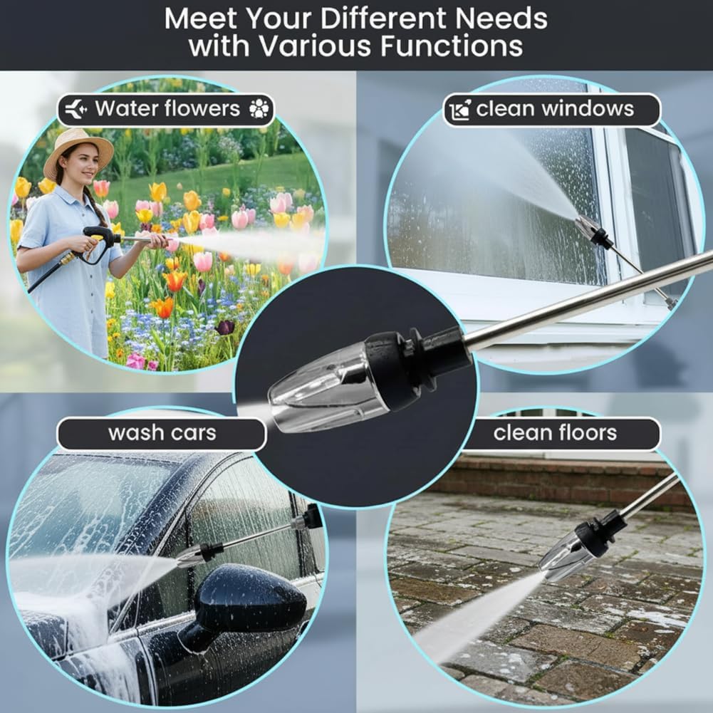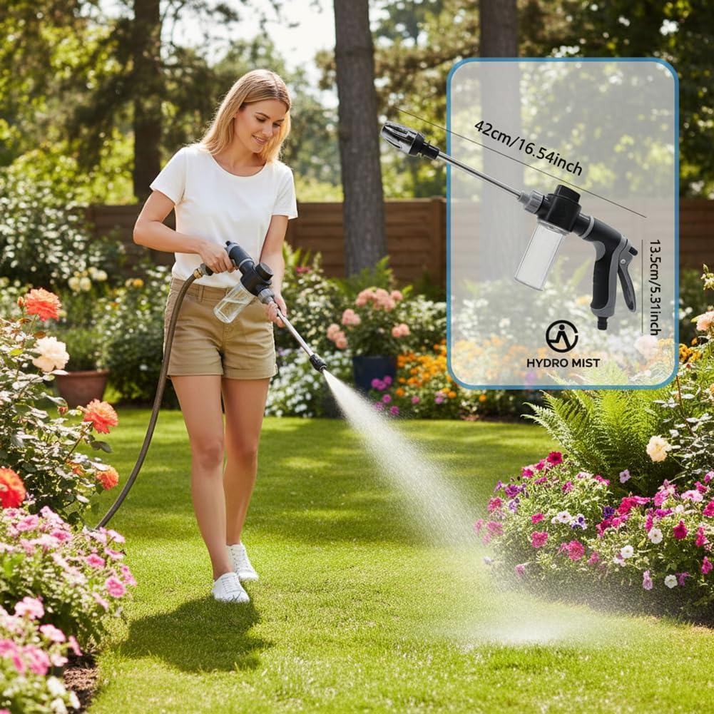 Multifunktionale Gartenspritzpistole: Die Hochdruck-Gartenspritzpistole verfügt über mehrere Spritzmuster, ideal zum Autowaschen, Blumengießen und Reinigen von Gärten. Der lange Griff ist auch ideal für die Reinigung von Böden, Balkonen, Glas und überall dort, wo man nicht hinkommt. Es kann sogar für Haustiere und Hunde für alle Ihre Bewässerung und Reinigung Bedürfnisse verwendet werden.