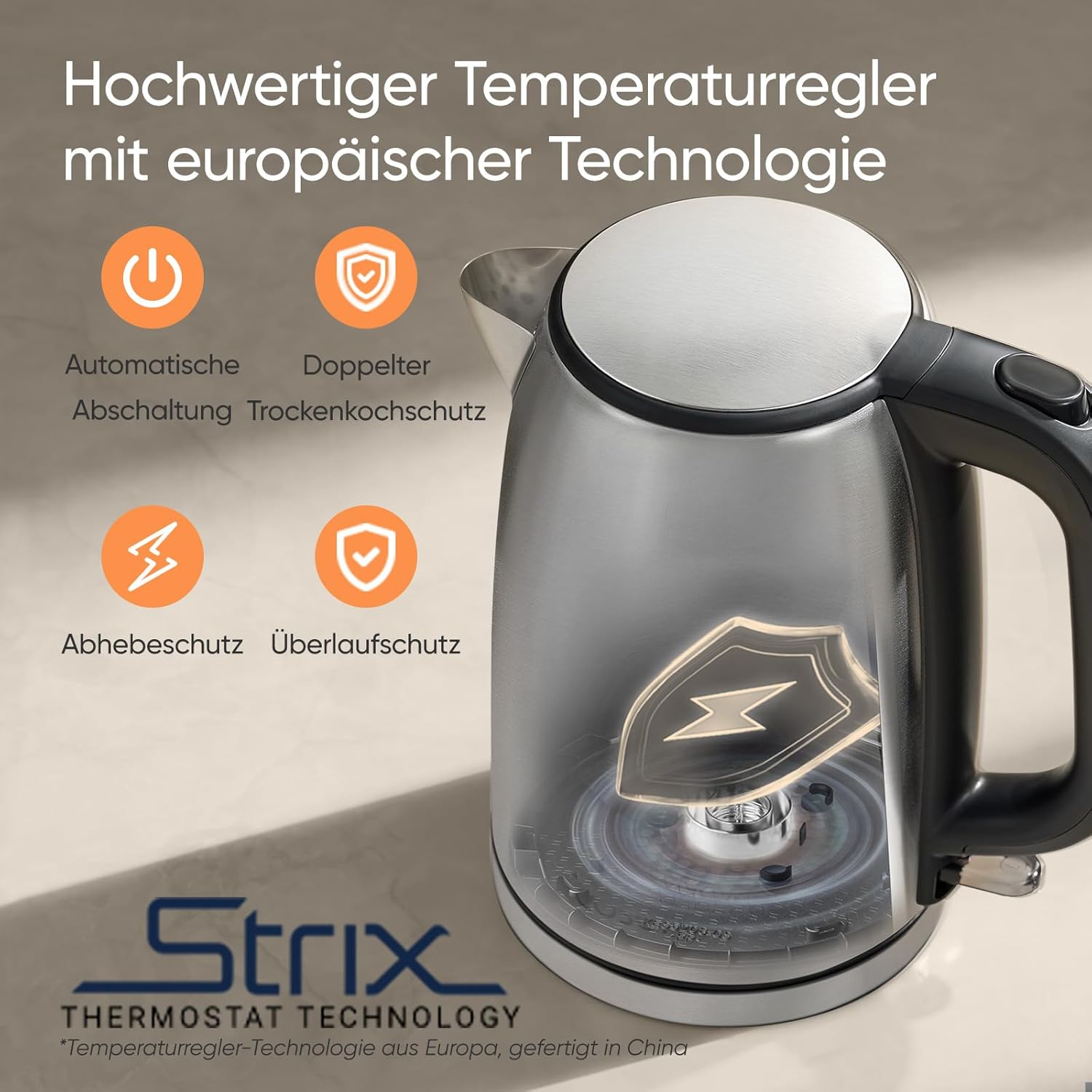 Das COSORI 1,7 Liter Modell kombiniert modernes Design, bewährte Strix-Technologie und praktische Sicherheitsfunktionen
